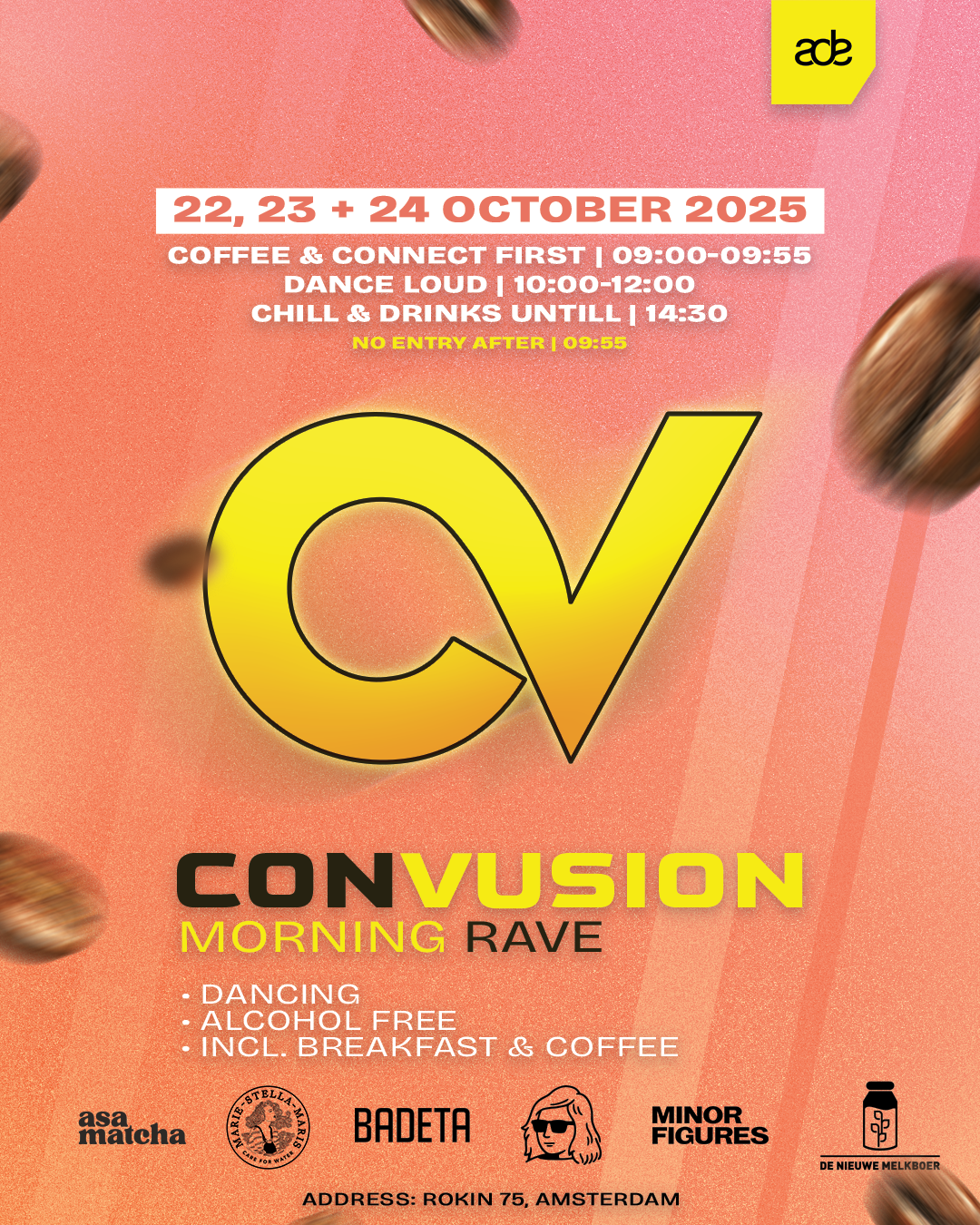 On 22, 23 & 24 October Convusion takes places in the heart of Amsterdam, during the Amsterdam Dance Event, we're organizing 3 morning raves.